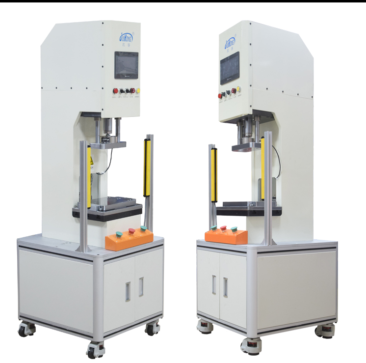 1T半弓型伺服壓力機(jī)是玖容【電動缸伺服壓力機(jī)】系列的一款產(chǎn)品,由伺服電動缸驅(qū)動,通過高精度滾珠絲桿輸出作用力,實(shí)施壓力裝配和壓力位移檢測功能的一款高精度智能壓裝設(shè)備。操作由專業(yè)開發(fā)的控制軟件保證全過程準(zhǔn)確控制壓裝力、停止位置、壓裝速度和保壓時間等參數(shù),達(dá)到全過程數(shù)控管理。伺服電動缸可以選配1T,3T,5T,10T。